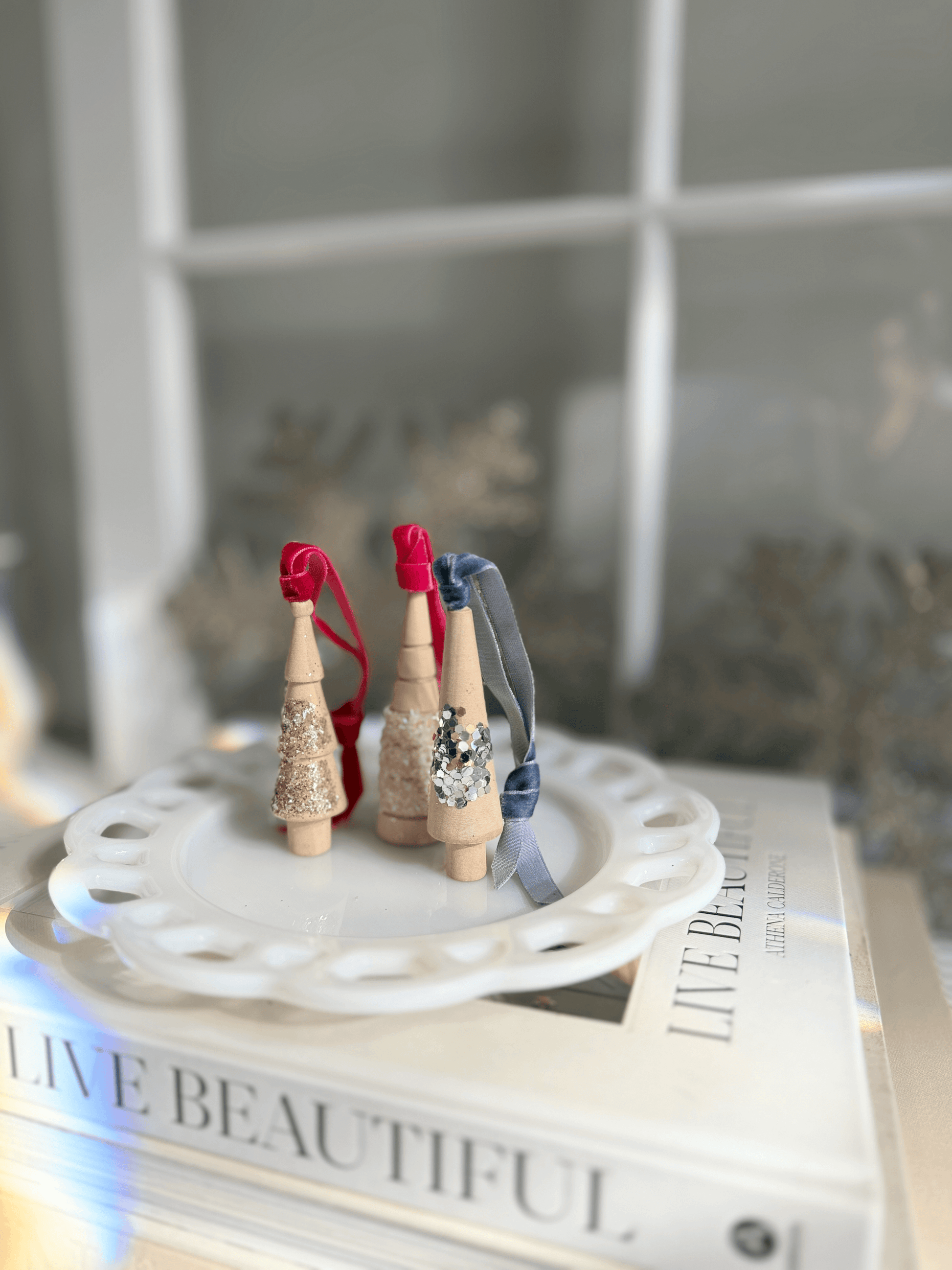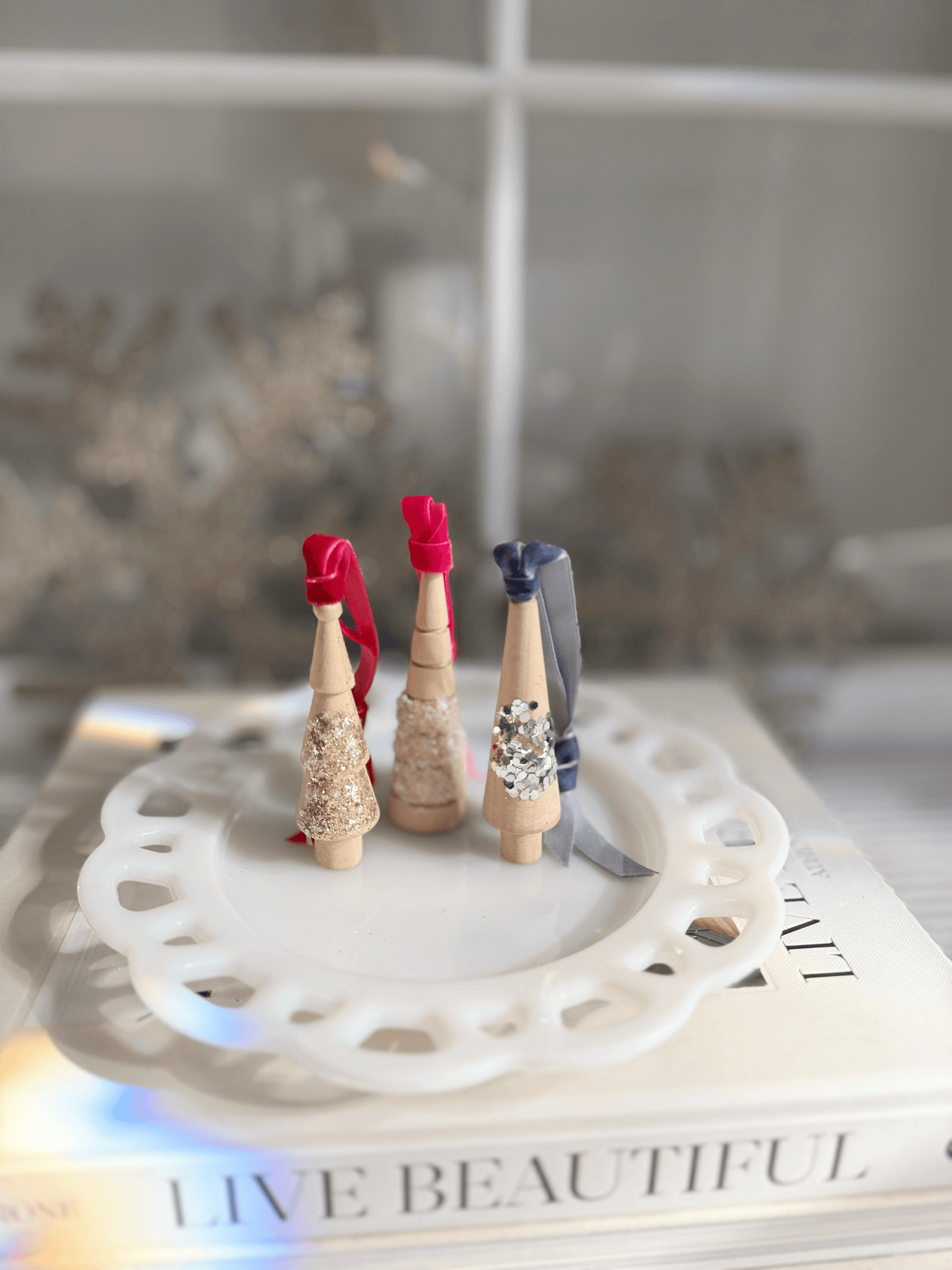 A sweet wooden tree finished in a warm gold sparkle — a little bit vintage, a little bit luxe.